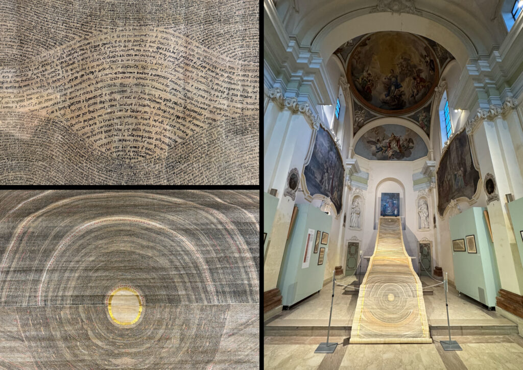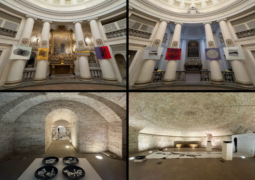Alfabeti & Memorie, curated by Arch. Andrea Pompili brings together Rosetta Berardi and Maeda Kamari in the 19th-century Church of Santa Cristina in Cesena. The exhibition is part of Cosmografie & Alfabeti, a curatorial program exploring the visual and symbolic power of the world’s alphabets.