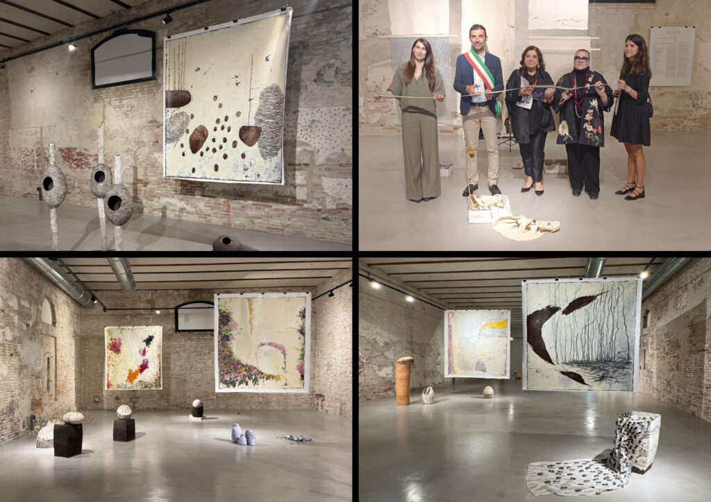 The exhibition presents nine installations, alongside a symbolic “beneaugurale” work. As noted by Andrea Pompili in the catalog, Mirna Manni’s practice brings together painting, sculpture, and “stitched” words into a single expressive gesture in which matter and language converge.