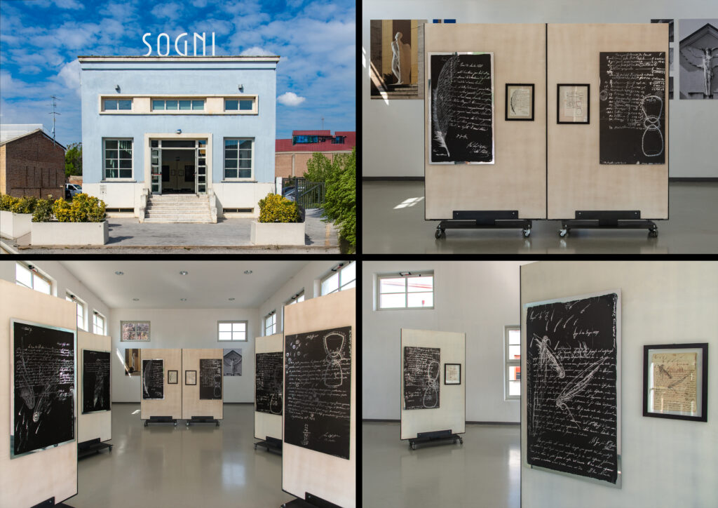 Ali di Pietra by Marisa Zattini, curated by Arch. Andrea Pompili was presented as part of the “Metaphysical Days” in Tresigallo, Italy. The exhibition unfolds from a central image—an eagle’s feather inscribed as a calligram on a 19th-century letter—creating a dialogue between text, image, and memory.